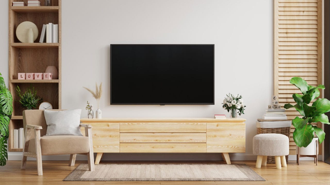 Si vous avez assez d’espace au sol et que vous avez prévu un meuble pour TV, la fixation sur pied est recommandée. C’est un mode d’installation classique où la TV est posée sur son support, puis sur son meuble. Mais si vous avez opté pour cette fixation, il ne faut pas oublier qu’il faut choisir un meuble de TV dont la largeur dépasse celle de l’écran.